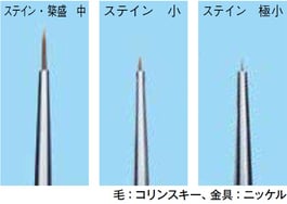 | 72596 | ステイン ブラシ 極小 | 3 | 毛:コリンスキー、金具:ニッケル | 04560195460394 |